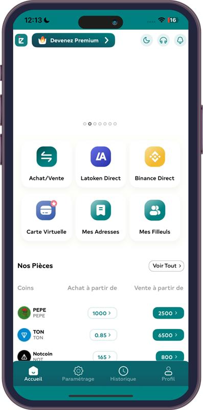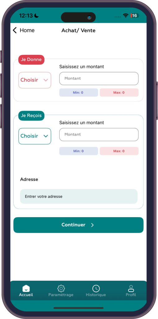 - Rendez-vous sur votre appli ou izichange.com, connectez-vous et cliquez sur Achat/vente.